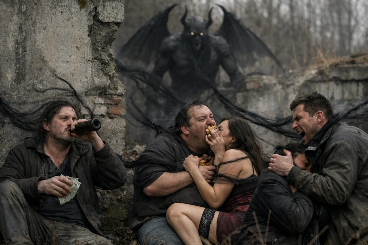 As described in the Book of Enoch, Azazel is condemned to the wilderness as punishment for corrupting humanity with forbidden knowledge. In Enoch, he is associated with the teaching of weaponry and cosmetics, tools considered dangerous and subversive to the divine order.