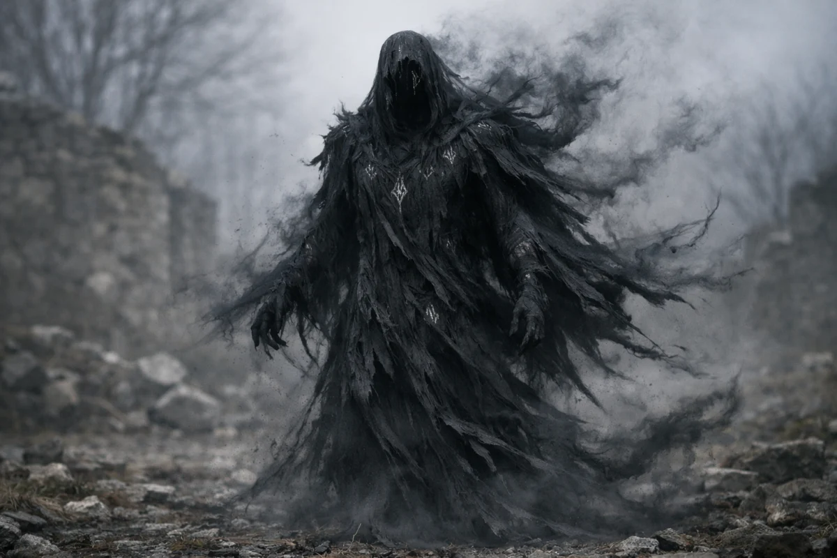 The Dark Watchers are described as towering, humanoid silhouettes. They are often seen wearing wide-brimmed hats or cloaks and carrying walking sticks.