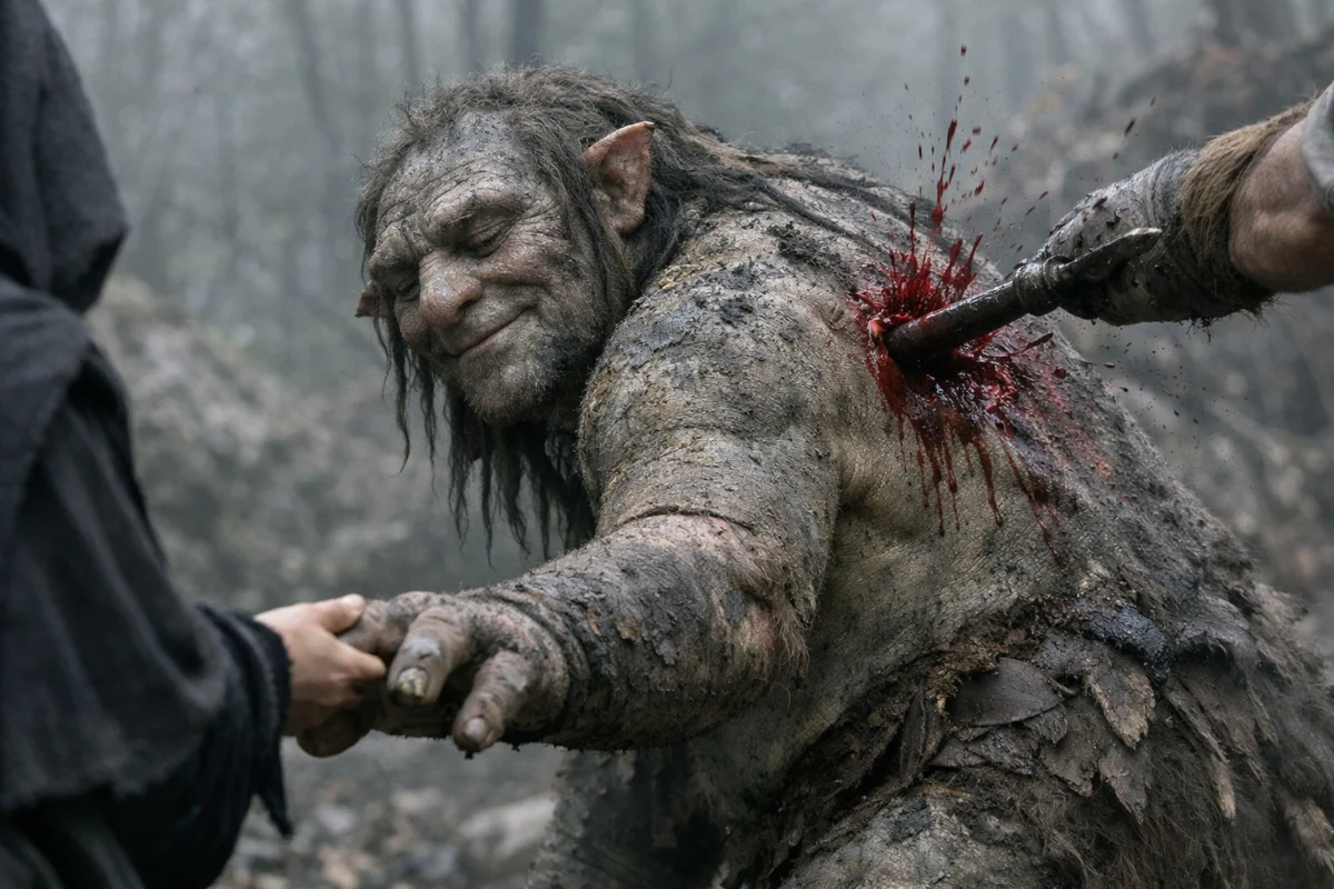 The farmer’s discovery forces the tanuki to leave, its human form lost forever. Though saddened, the farmer reflects on the tanuki’s kindness, realizing that trust and gratitude must outweigh suspicion and fear of the unknown.